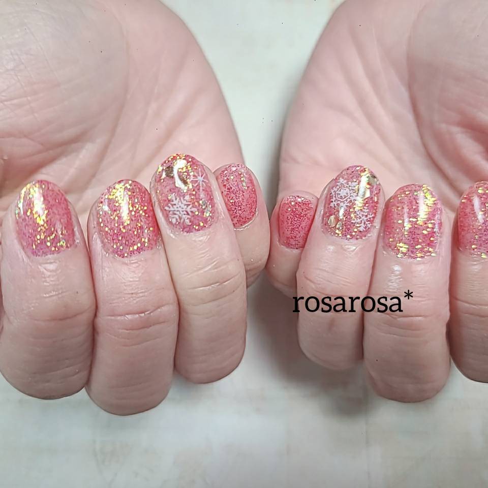 キラキラ!ラメ 2021.12.15 オーロラの入った赤いラメを全塗りしました! キラキラがとても可愛いです。 雪の結晶と、大きめのホロを入れて、冬らしさも感じられるようにしました。 すっごくお似合いです(*^^*)
