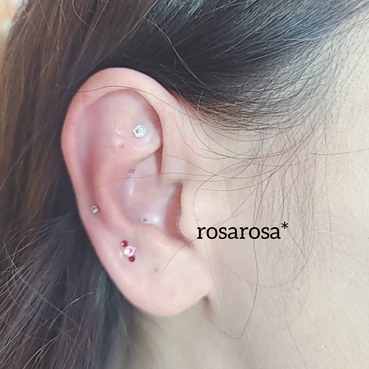 ネイルと一緒にやってくださいました。 肩こりが辛いサインが出てます。 耳がかなり固くなっていました。揉みほぐして、柔らかくなった耳に驚いていました。 代謝アップも気になるということだったので、合わせて貼りました。 キラキラ可愛く、健康にも気を付けることが出来る耳つぼジュエリーは、お洒落なアイテムですo(^o^)o