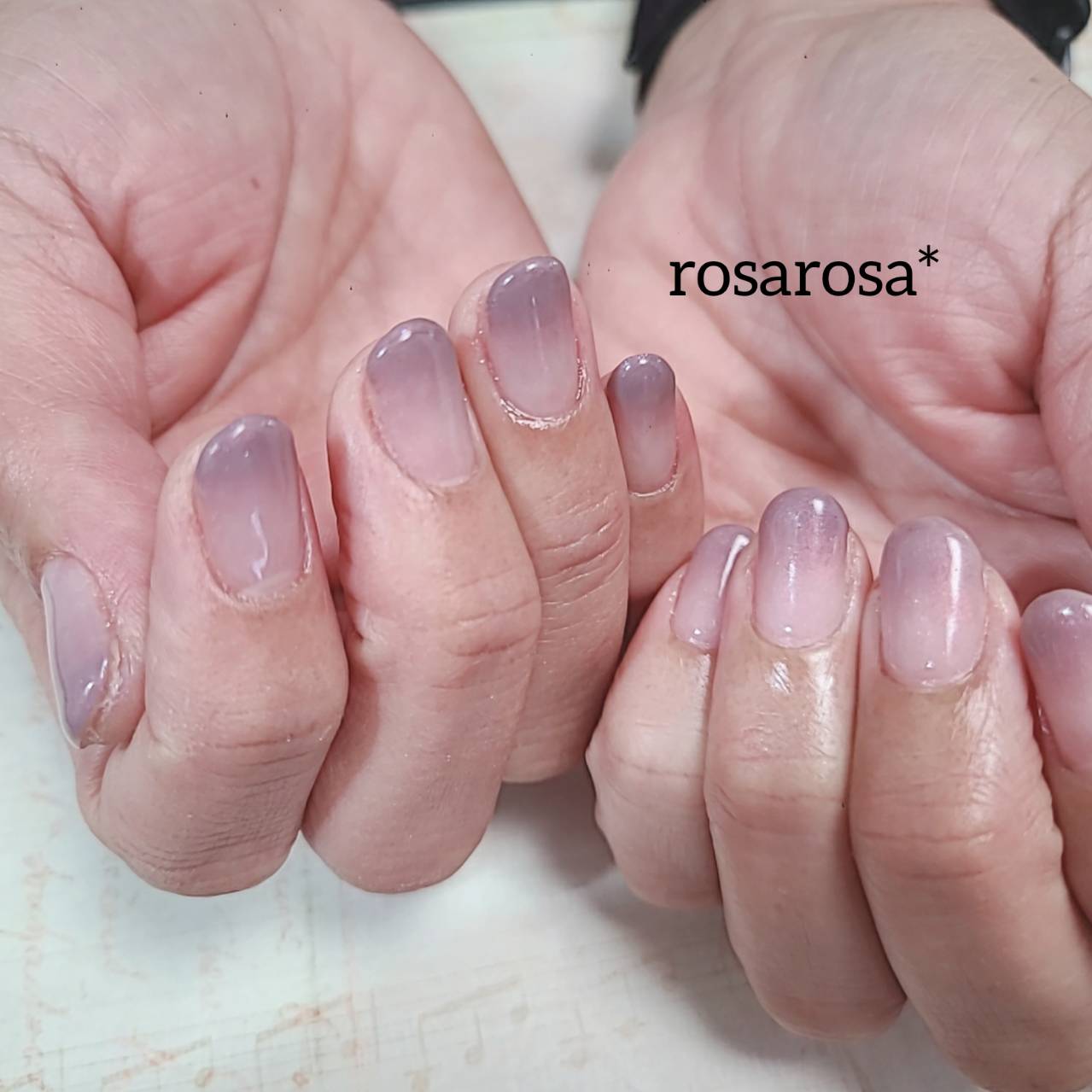 グラデーション 2021.11.30 パープルのグラデーションです。 あまり濃すぎないほうがよかったのですが、そのままの色だと少し目立つ気がしました。くすませるために、うすいグレーを足しました。いい感じになりました。 お客様のイメージに近づけるように、努力しますので、お気軽に相談してくださいね(^-^)/