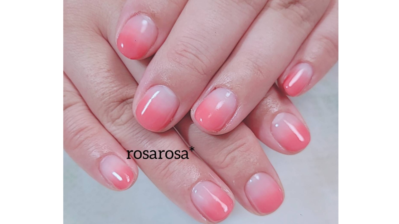オレンジみのあるコーラルピンクのグラデーションです。 お肌が艶々してみえますね! 爪が伸びるのが気になる方は、グラデーションがオススメです(*^^*)