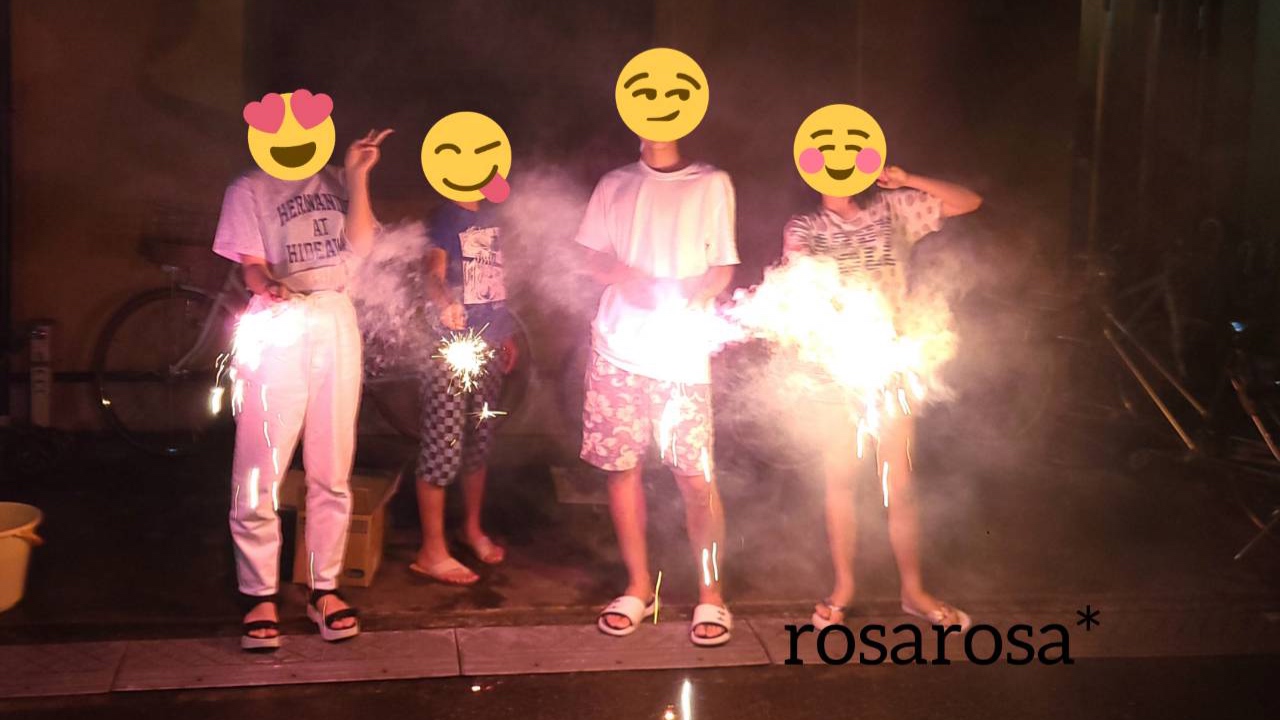 夏らしい思い出に、花火をやりました。火薬の匂いも好きです。 子供たちも大きくなったので、楽になりました。