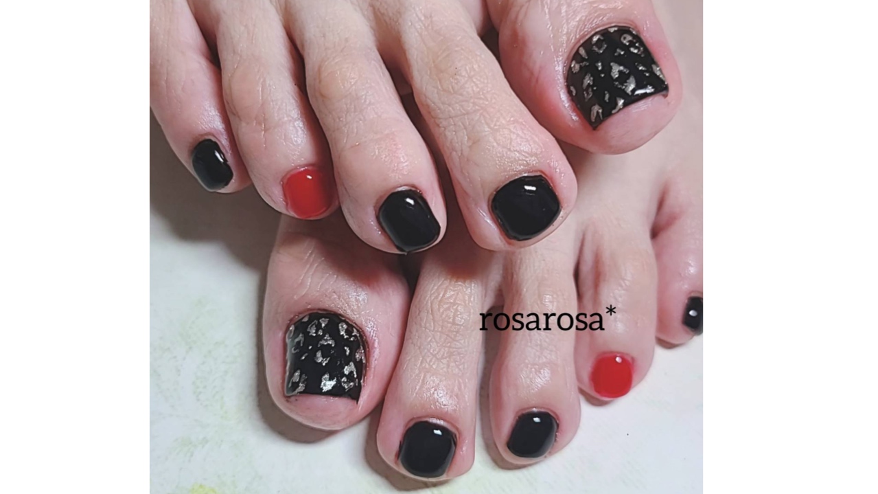 フットネイル 2022.09.9 9月に入り、秋を意識したデザインが増えてきました。 秋といえばやりたくなるのが、レオパードですね! 黒にシルバーでレオパード柄を描いてかっこよくしました。 赤もアクセントになっていて、素敵ですo(^o^)o
