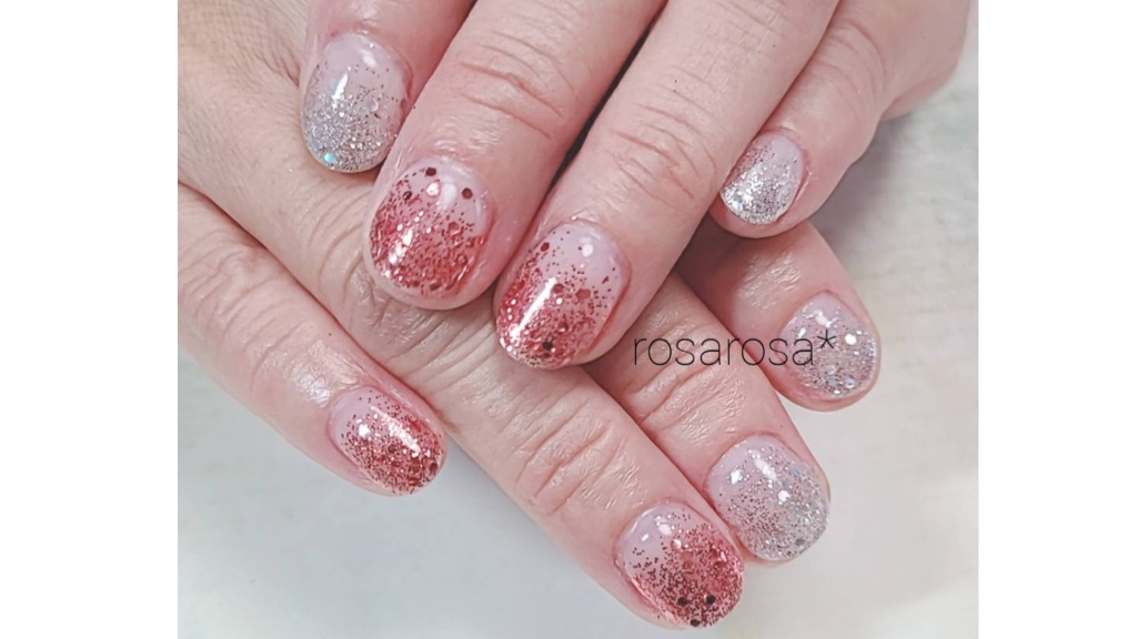 はだ馴染みのいいピンクのホログラです。 ラメグラよりも、キラキラ感が増して華やかになります! ショートネイルでも、素敵にまとまりますd=(^o^)=b