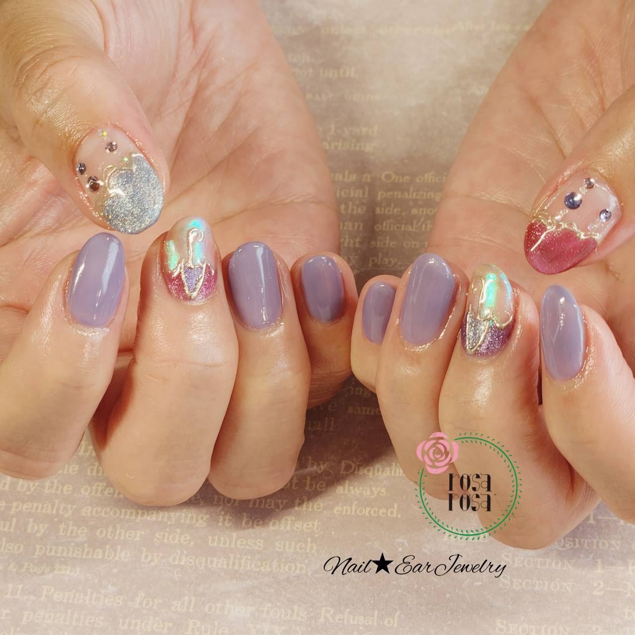 アンブレラ 2025.05.15 ネイルで季節を楽しむのも素敵です。 もうすぐ梅雨になりますので。 アンブレラのデザインにしました。 青みのあるマグネットを組み合わせて、まとまりのあるようにしました。 サマータイプのお客様の肌が、透明感が増します。 手元から涼やかに!
